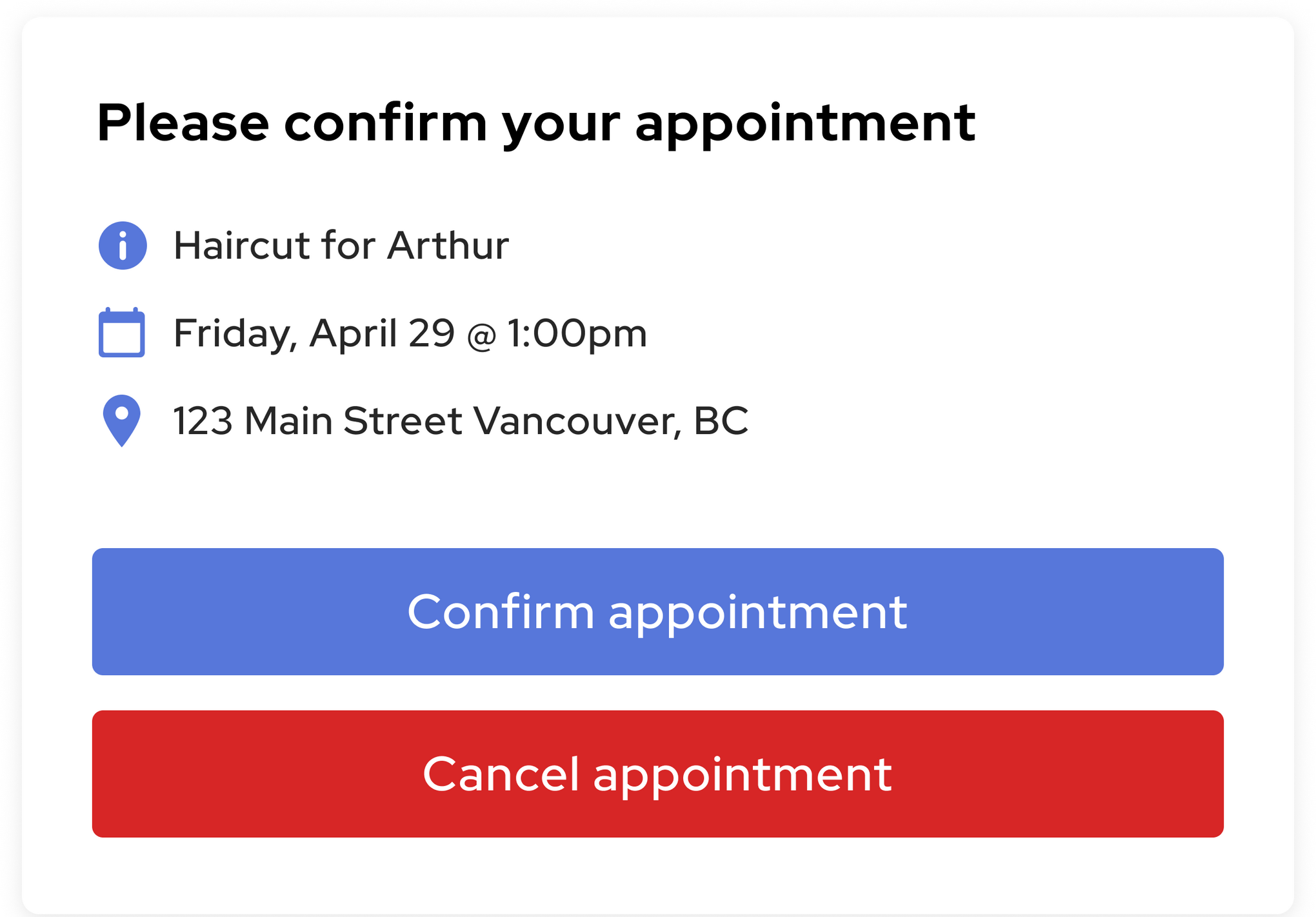 Sometimes sending a reminder isn't enough for customers to remember their appointments. With the Appointment Confirmations feature, you can ask customers to confirm or cancel their appointment and we'll update your calendar so it's easy to see the status of your appointments at a glance.