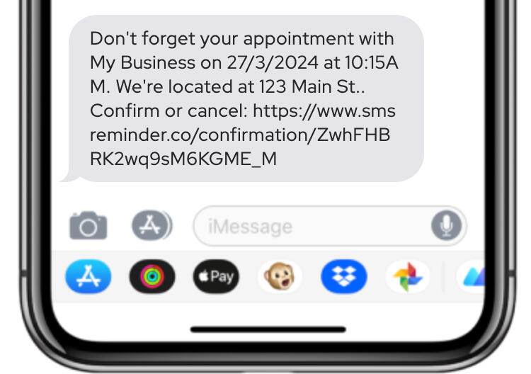 When you activate Appointment Confirmations we'll include a short message and URL in the SMS reminder asking the customer to Confirm or Cancel.