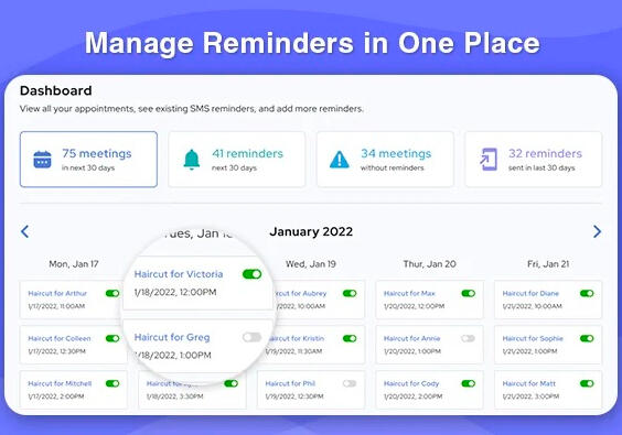 The web application lets you manage all your reminders in one easy place. Set reminders, view appointments without reminders, view sent reminders and more.