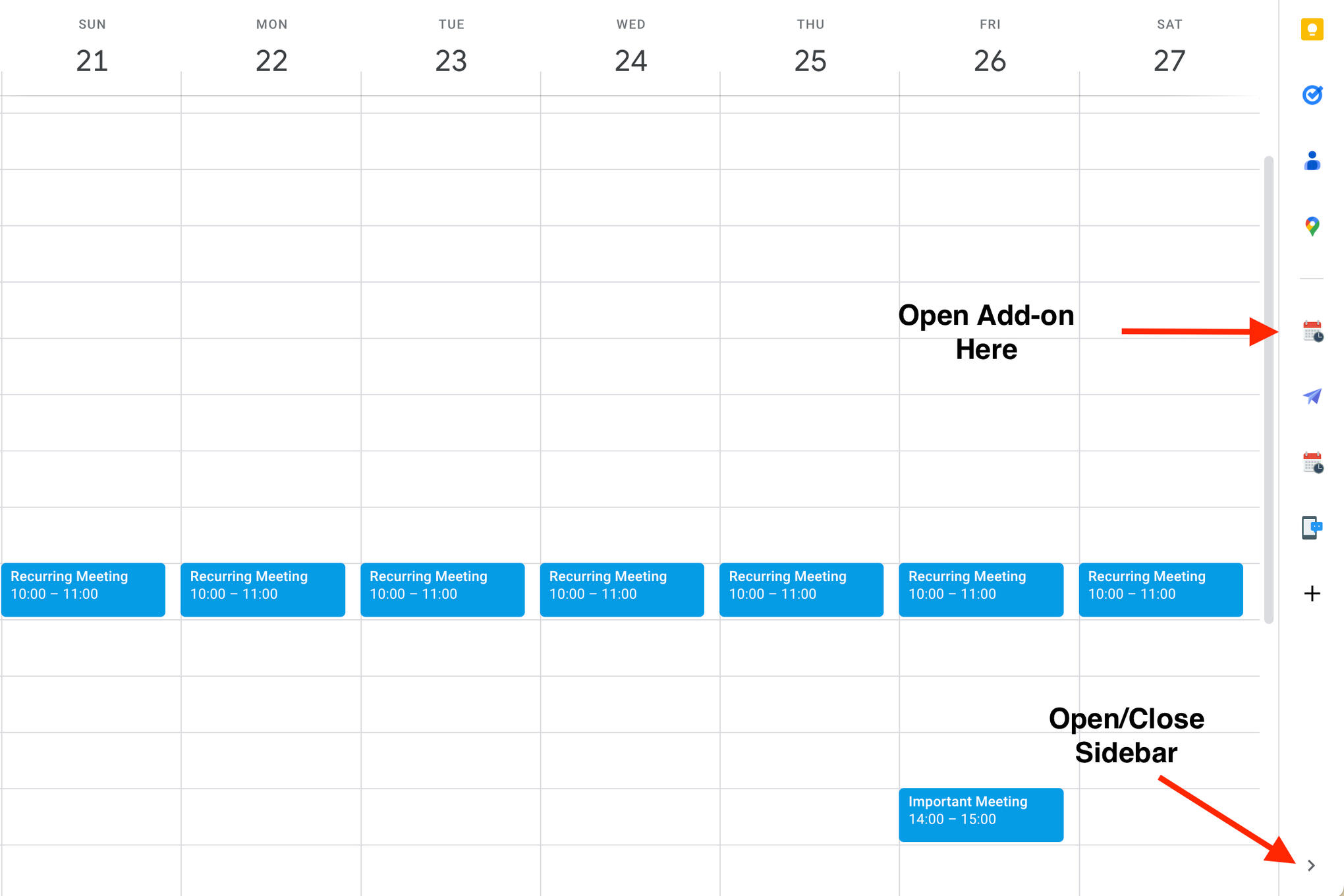 Install the app from Google Workspace Marketplace. Now visit your Google calendar and open the app in the sidebar of your calendar.